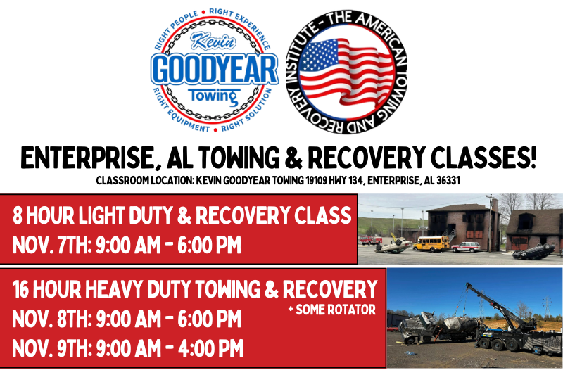 Enterprise, AL – Nov 7th – 9th, 2025 Light Duty & Recovery Class OR 16 Hour Heavy Duty Towing & Recovery Class